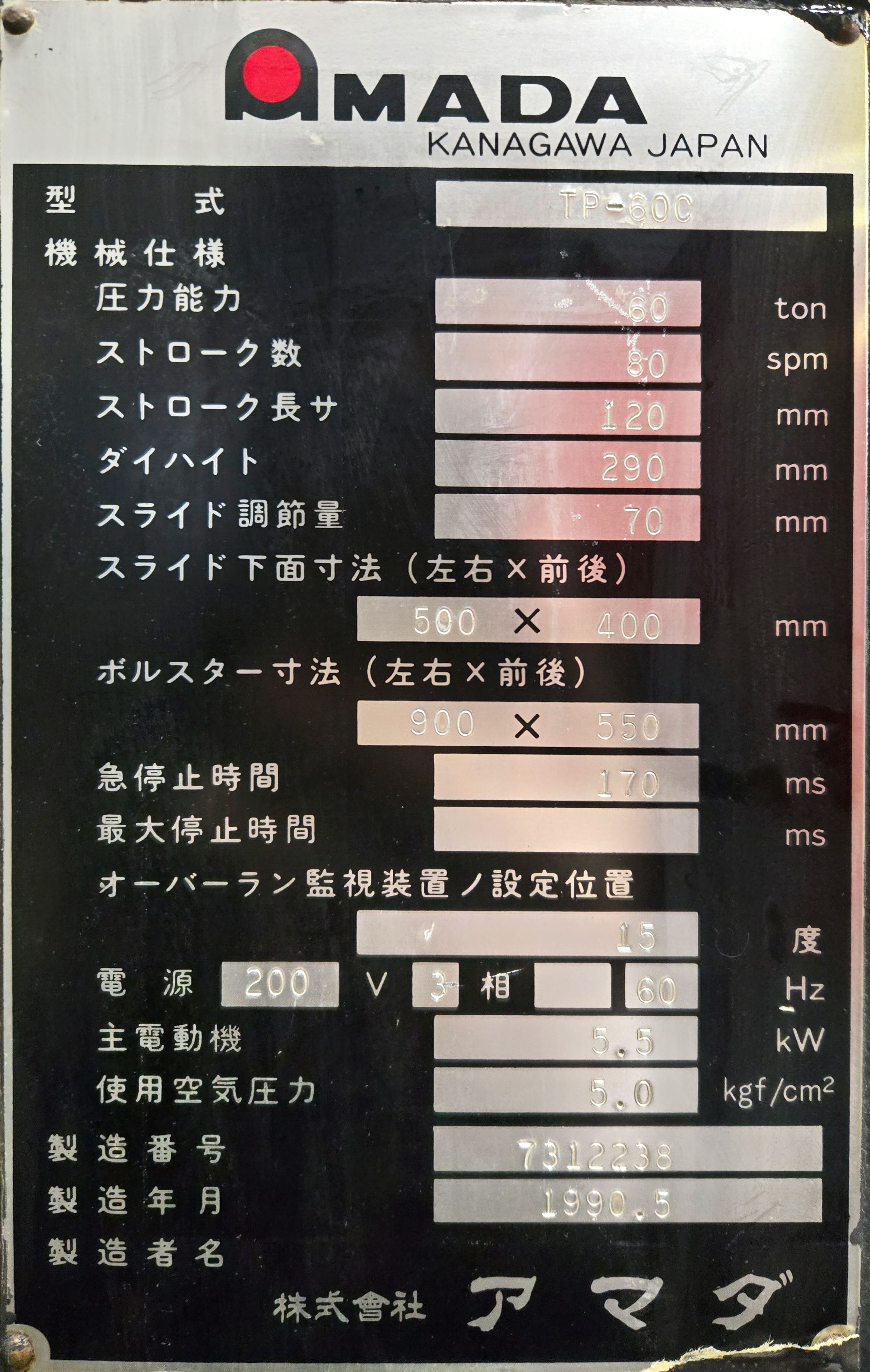 60TON/st120/spm80/DH290/電動AJ70/B900×550/S500×400/SE