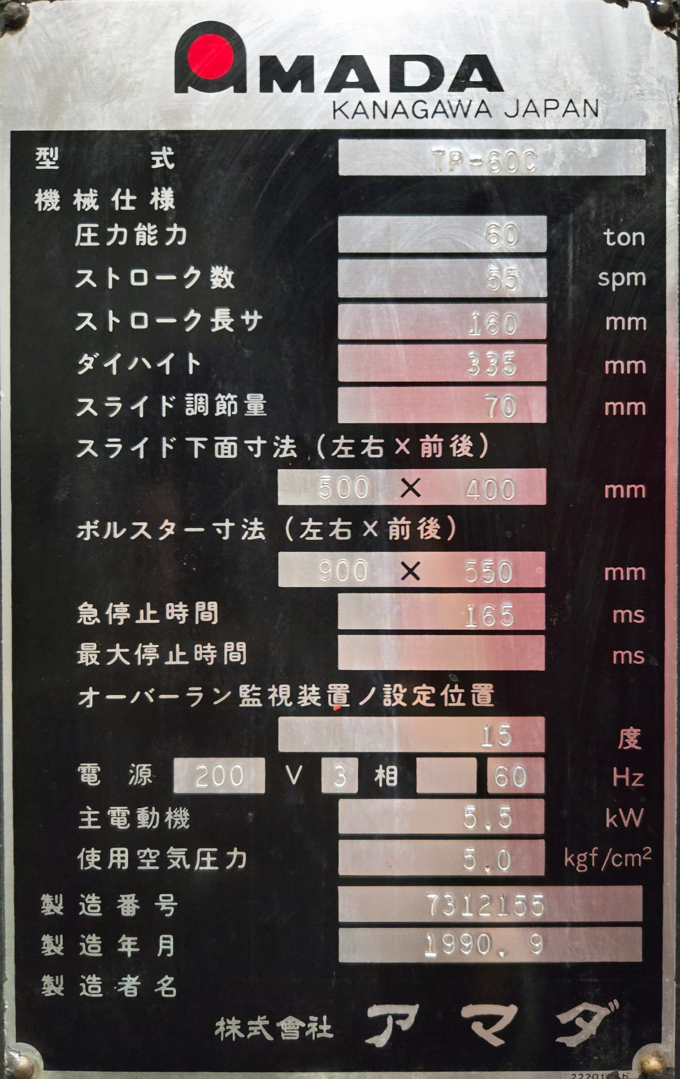 60TON/st160/spm80/DH335/電動AJ70/B900×550/S500×400/SE・DC